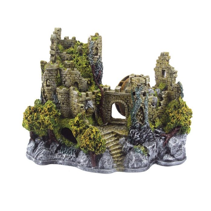 Enfeite de resina de poliéster para uso submerso em aquários de água doce ou salgada.
