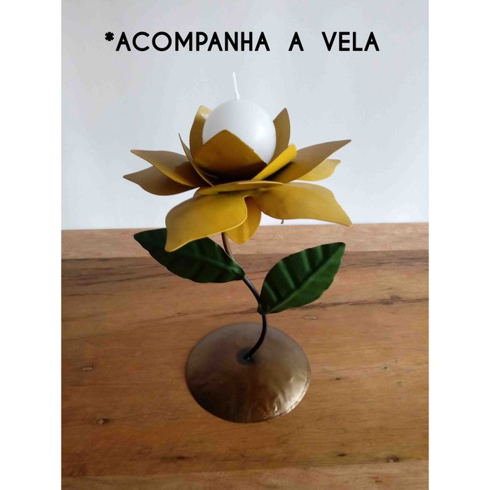 Castiçal de Vela Decoração de Aparador e Mesa de Festa Rustico Artesanal - Amarelo