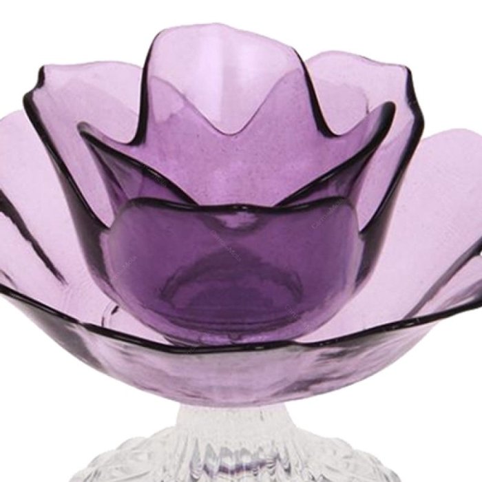 Castiçal Flor Roxa e Vidro - 16x12 cm