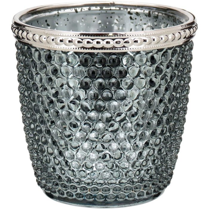 Castiçal Lustrado Vidro Cinza Temple 8X8X8Cm NH