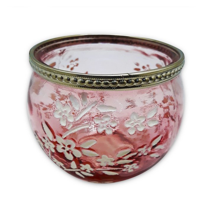 Castiçal Porta Velas em Vidro Moderno Floral Rosa 19 Cm