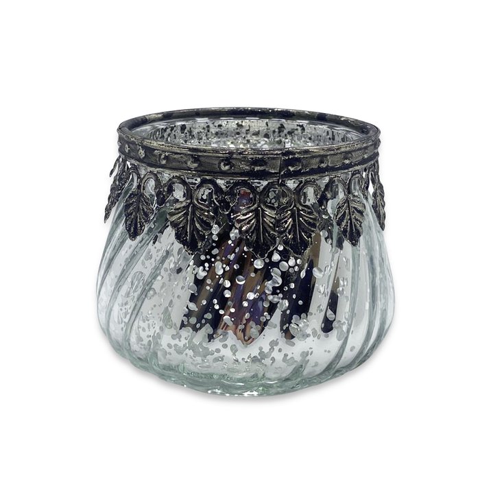 Castiçal Porta Velas Medieval em Vidro Vintage Prata