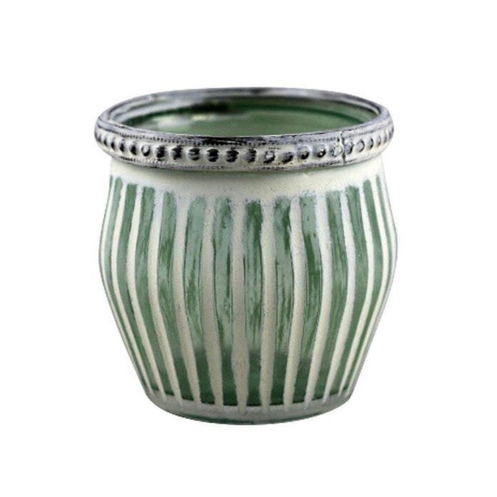 Castiçal Vidro Marroca Listras 6,5cmx7cmx7cm Urban Verde