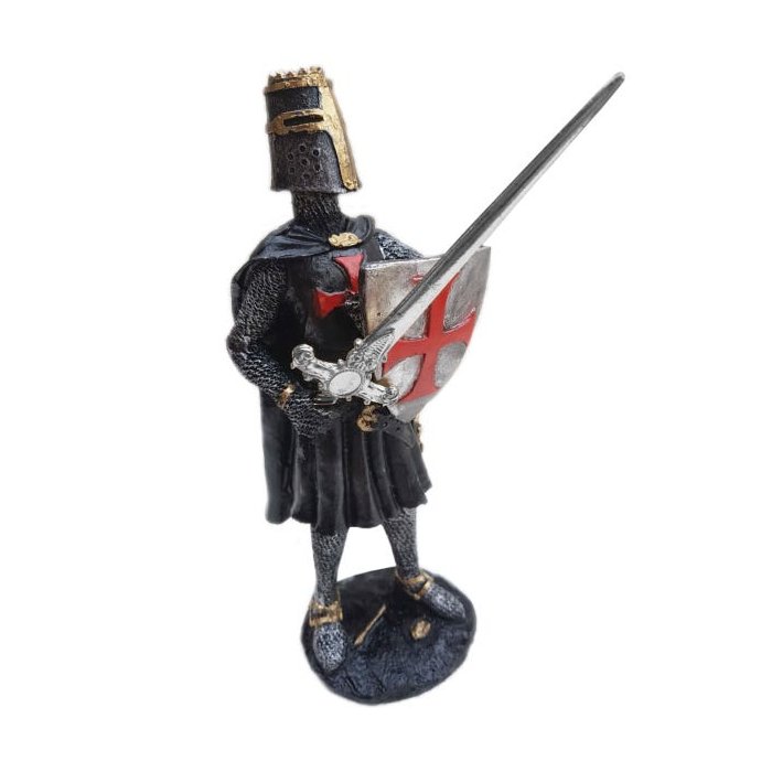 Cavaleiro Templário Guerreiro Medieval Preto, com espada e escudo, em resina de altíssima qualidade.