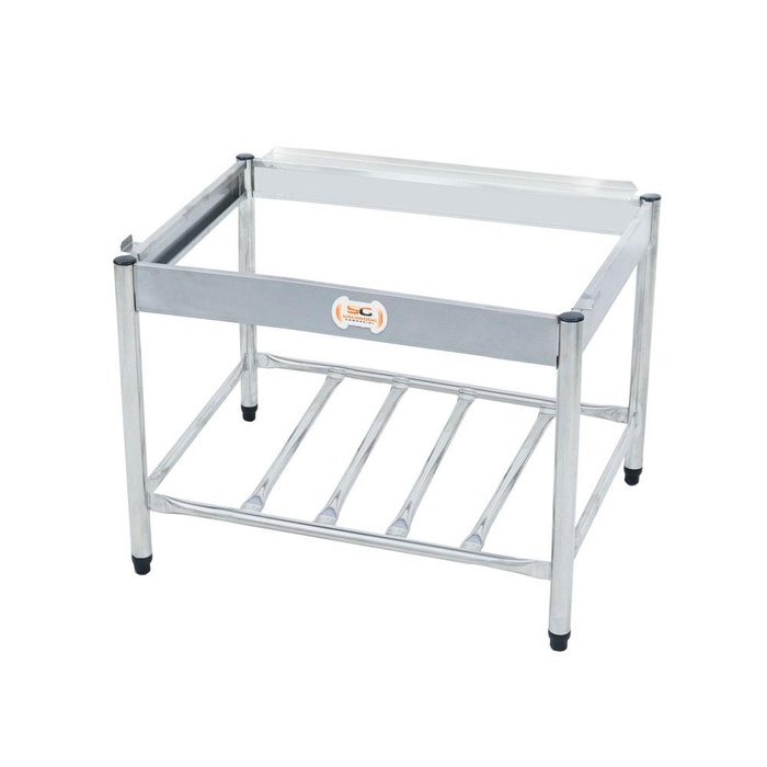 - Cavalete totalmente fabricado em aço inoxidável 304 com sapatas plásticas, para evitar o deslizamento.
