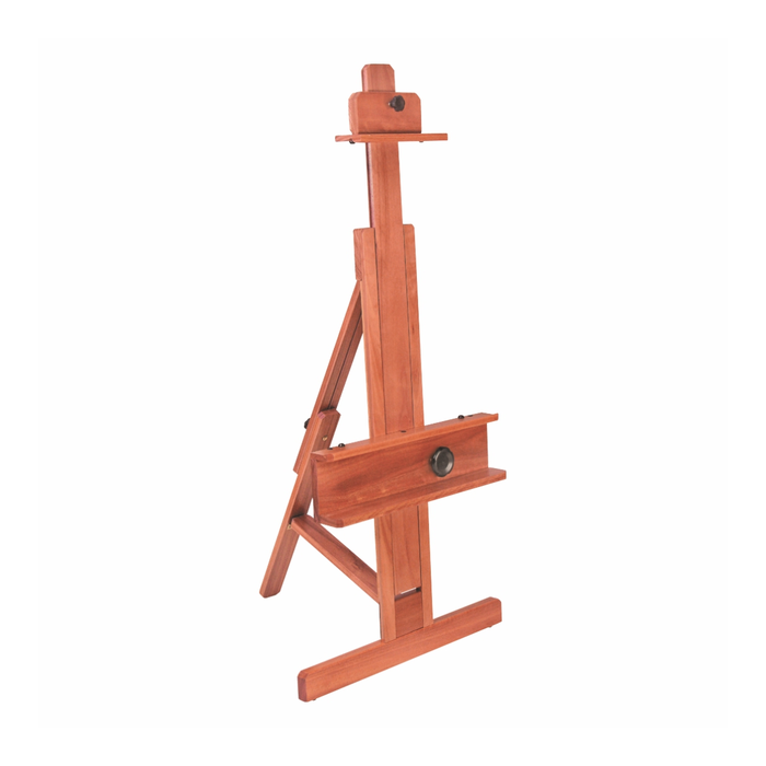 DESCRIÇÃO:Robusto cavalete de médio porte, com perfeito sistema de fixação do suporte da tela. Com altura 1,37 à 2,10 m.DADOS TÉCNICOS:suporta telas de até 1,75 m.ITENS INCLUSOS:1 Cavalete de Pintura