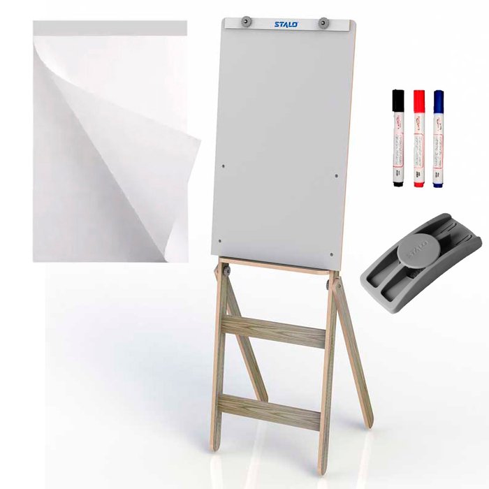 Cavalete Porta Bloco Flip Chart MDF Com Quadro Branco FIT STALO 9425 + Bloco Flip 50 Folhas + 3 Marc