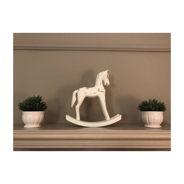 Cavalo de Balanço em Madeira - Branco para decoração de quarto de bebê e criança. Linda peça que balança ao toque. O desgaste na pintura é uma característica do produto e pode haver pequenas variações.