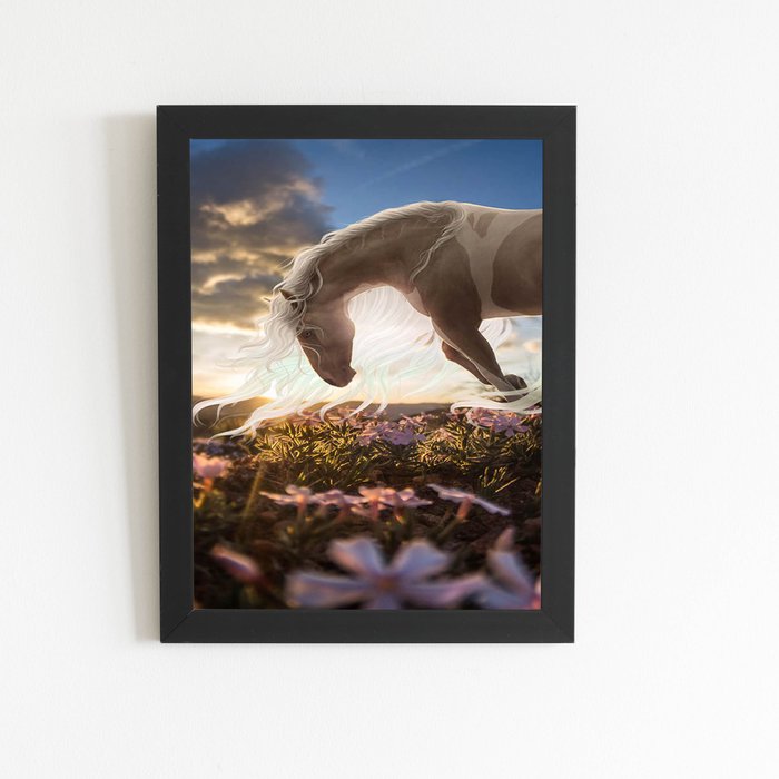 Cavalo Crina Branca Desenho Quadro Moldura Preta 60x40cm