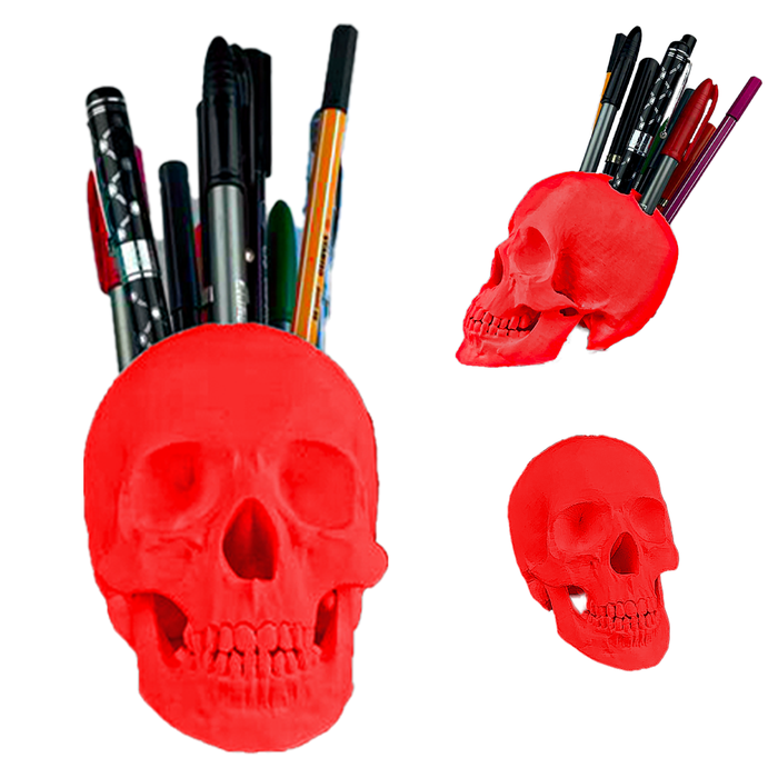 Caveira 3D Porta caneta, lápis, pincel - Vermelho