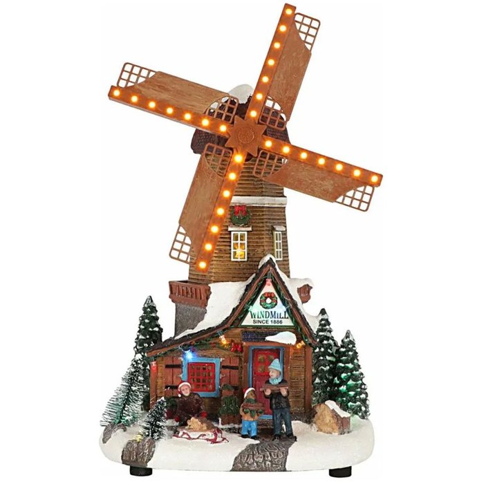 O cenário Cenário Moinho de Vento Natalino e uma peça com detalhes delicados, com iluminação, movimento e musica, com material em resina e pintura delicada