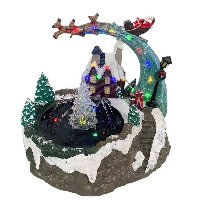 Cenario Vila Natalina Natal Led Musical Fonte de Agua Som Luz Enfeite Papai Noel Arvore Treno Rena a Colorido