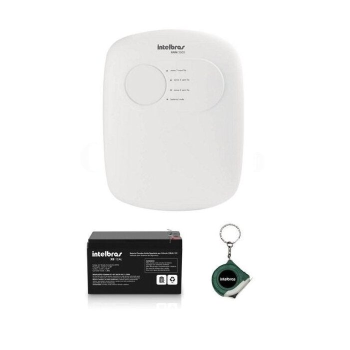 Conteudo do Kit: 1 Unidade: Central de Alarme Não Monitorada ANM 2003 - Intellbras 1 Unidade: Bateria Selada para Alarme 12V/6,0AH XB 12AL - Intelbras 1 Unidade: Trena de 1m em material emborrachado - Intelbras OBS: Sensores, cabos, sirene e demais acessórios não inclusos. Modelo: ANM 2003 Descrição: Compacta, de fácil utilização e instalação, a ANM 2003 possui tempo de disparo da sirene programável, carregador de bateria (12 V) inteligente com proteção contra curto-circuito ou inversão de polaridade e função de teste (JP2), que auxilia na instalação e manutenção do sistema de alarme. Pode ser conectada a vários tipos de sensores, como de abertura e infravermelho. Ideal para empresas, residências, condomínios residenciais e empresariais, demais estabelecimentos comerciais de pequeno e médio porte. Fonte chaveada Full Range de 90-265 VAC (automática) Carregador de bateria inteligente com proteção contra curto e inversão de polaridade da bateria Detecção de bateria baixa, ausente, invertida e/ou em curto Receptor incorporado e controle remoto com bateria incluso Capacidade para configuração de Zona 24 h com aviso sonoro Tempo de sirene programável Sinalização visual (status) na central de alarme Gabinete plástico para proteção da central com alojamento para bateria