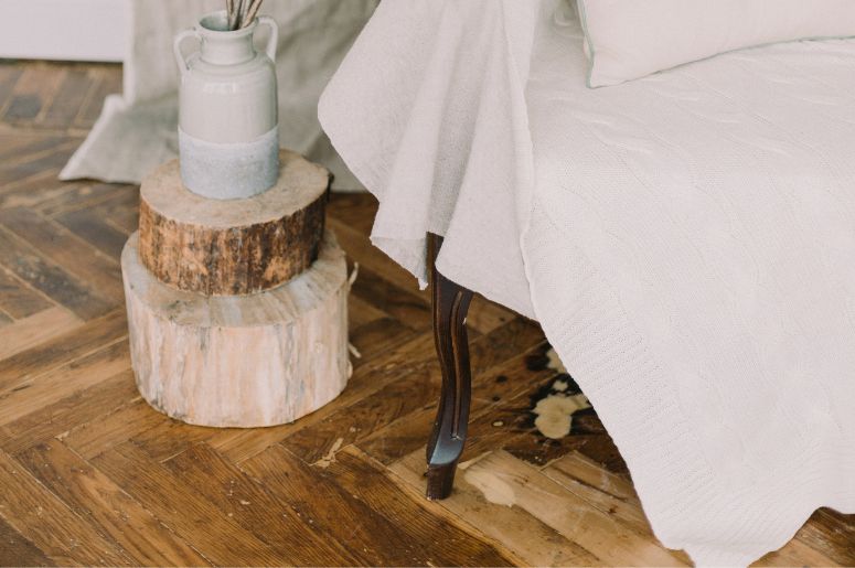 Geralmente, têm o design simples e são robustos e imponentes. São de madeira, ferro envelhecido, couro ou pedra. Além disso, o acabamento dos móveis rústicos é bruto, destacando as texturas e imperfeições naturais do material.