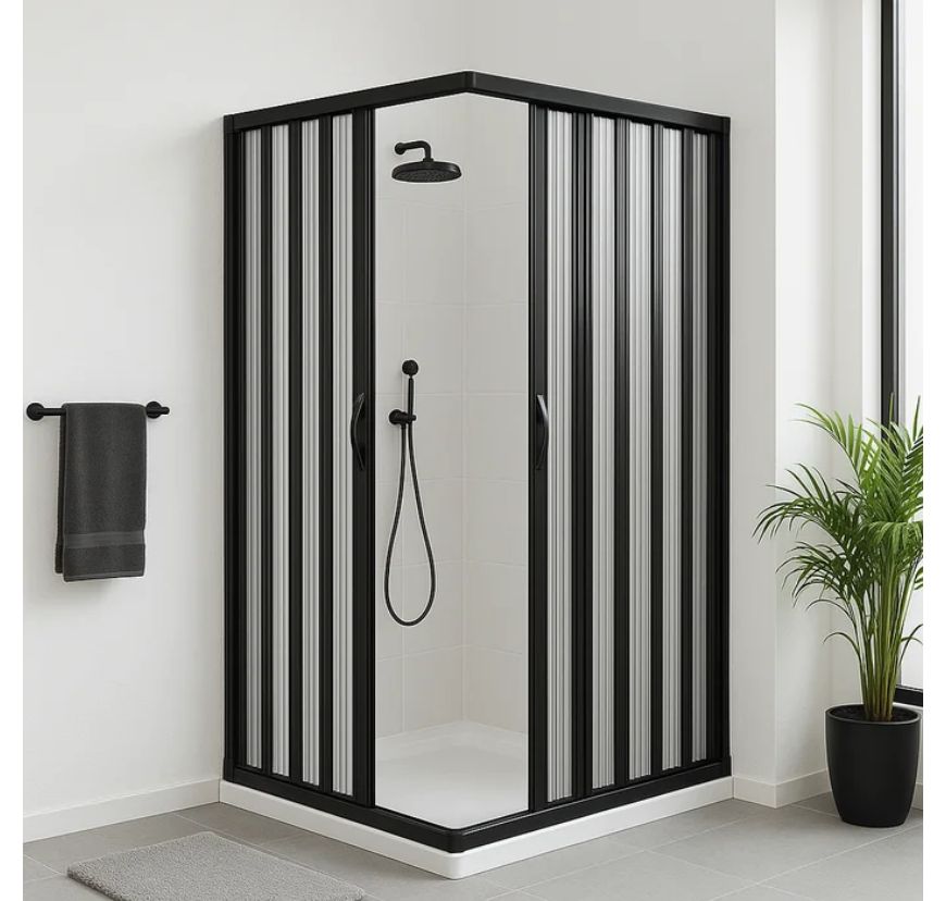 Alternativa econômica e funcional para espaços muito pequenos. Embora seja prático, costuma ter menor durabilidade e vedação inferior ao vidro.