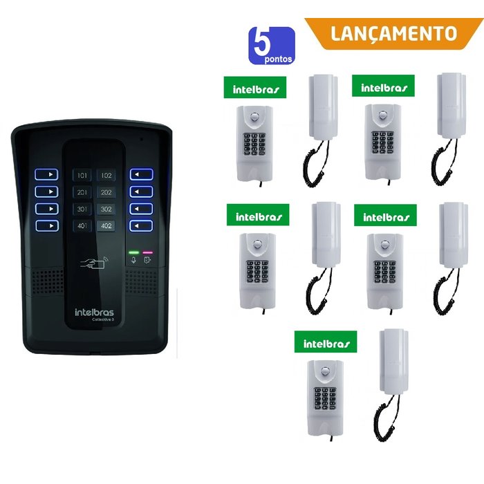 | Itens Inclusos | 01 - Central de Interfonia Coletiva Intelbras Collective 8 05 - Interfone Interno Terminal Dedicado TDMI 300 Intelbras |