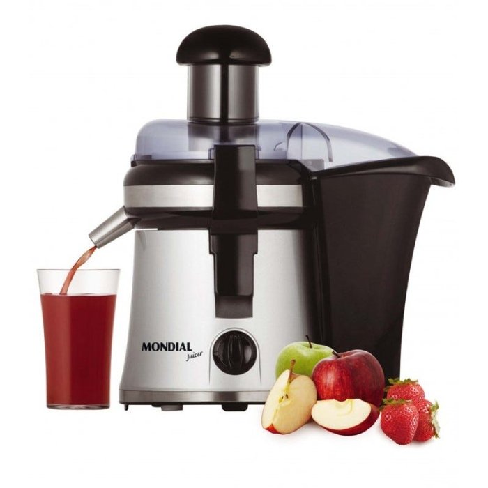Centrífuga Mondial Juicer CF-02 Prata e Preto 127V Quando você espreme ou faz sucos em outros equipamentos que não seja o Juicer da Mondial parece que seu dinheiro ficou junto com o bagaço da fruta. Nunca é aproveitado 100%. Com a Centrífuga Juicer, você não disperdiça nada e aproveita as vitaminas e nutrientes que as frutas, legumes e até verduras tem a oferecer ao seu corpo! Embolo com topo fechado. Trava dupla de segurança. Peneira de microtrituração em aço inox. Ventosas na base. Acessório: copo com bico para servir. Por uma vida mais saudável Faça sucos muito mais saborosos Tome sucos mais gostosos com a centrífuga Mondial CF-02, um aparelho competente e capaz de tornar as suas refeições muito mais saudáveis. Varie o cardápio com bebidas extraídas de frutas frescas (ou verduras e legumes!), crie sucos e vitaminas. Esse aparelho de design moderno e diferenciado, tem duas velocidades de trituração, além da função Pulsar, que pode ser usada para quebrar gelos e deixar a sua bebida refrescante. Ventosas na base aderem à superfície da mesa ou da pia, para facilitar a operação do produto. Sem precisar peneirar Uma peneira interna se encarrega de coar o suco Uma peneira interna em aço inox facilita o trabalho de extração, para que você não precise coar o seu suco antes que ele chegue ao copo. A centrífuga se encarrega de peneirar e despejar o suco prontinho no copo com bico para servir que acompanha o produto. Mais fácil de fazer e de limpar A polpa e o sumo são separados em coletores diferentes Retire o embolo para colocar as frutas, em pedaços e descascadas, se você preferir, e gire o seletor de velocidade. A polpa será mandada a um coletor lateral em propileno preto, e o sumo também será separado. Tudo para deixar a sua vida mais fácil e facilitar a limpeza da centrífuga. Um suco de fruta natural é perfeito para qualquer ocasião: para o café-da-manhã, lanche da tarde, jantar... Além de saboroso, é muito saudável. Faça variados e deliciosos sucos, de forma rápida e prática, com esta centrífuga. Basta colocar pedaços de frutas, legumes ou verduras, e optar entre as 2 velocidades ou função Pulsar. Possui trava dupla de segurança e ventosas na base, para que não abra ou saia do lugar enquanto tritura, e a peneira de microtrituração é em aço inox, garantindo mais resistência e durabilidade ao produto. Acompanha um copo com bico, pronto para servir. Características: - Marca: Mondial - Modelo: CF-02 Especificações técnicas: - Potência: 250W - Consumo: 0,25 Kw/h - Voltagem: 127V (ATENÇÃO NÃO É BILVOT) - Cor: Preto/Prata - 2 velocidades + pulsar - Design exclusivo - Acompanha copo com bico para servir Conteúdo da embalagem: - Mondial Centrífuga Juicer CF-02 127V - Copo com bico para servir - Manual do Usuário