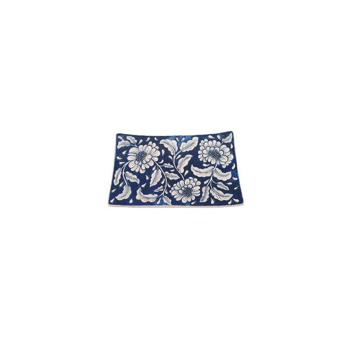 Este centro de mesa é feito de cerâmica, e foi pintado a mão, com tons de azul.