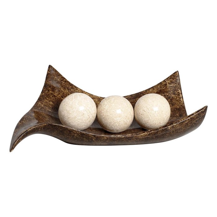 Centro de Mesa com Esfera para Decoração Sala Classic Marrom e Bege Petra 16x49x32 cm