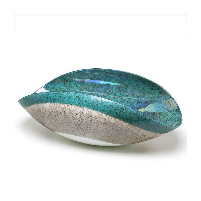 Centro de Mesa de Murano em vidro opaco na cor interna Verde Esmeralda com aplicações pontilhadas marrom. Peça executada em Murano, na Itália de forma totalmente manual e artesanal seguindo antigas tradições dos mestres vidreiros que executavam-nas para demonstrar suas habilidades e perícia no trabalho com o vidro artístico. Na decoração, confere graça ao ambiente como um detalhe singelo ou em ricas coleções. As peças seguem um padrão, porém, devido a sua característica artesanal, cada peça é única.