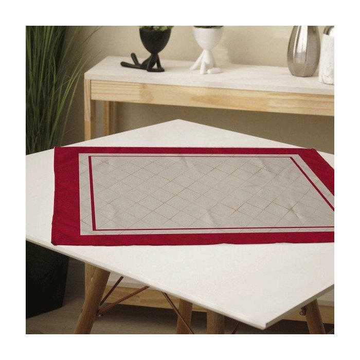 Centro de Mesa de Natal Geométrico com Bordas Vermelhas 70cm x 70cm -