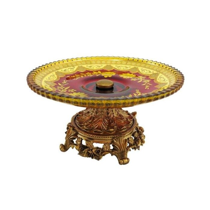 Saiba mais sobre o Centro de Mesa em Cristal Vinho e Dourado: