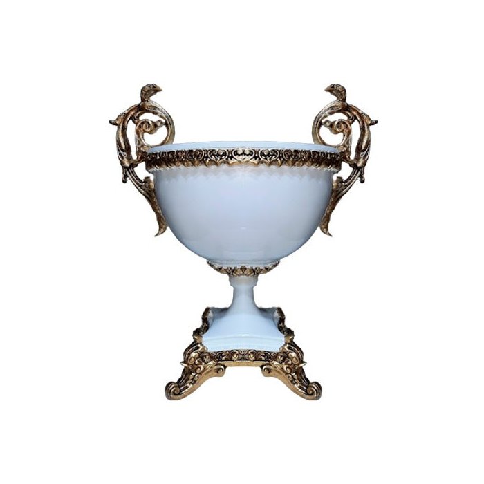 Centro de Mesa Toscana - 43x41x29cm - Centro de Mesa Clássico em Alta Qualidade Branco com Detalhes Dourado