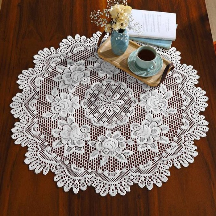 Centro para Mesa Interlar Renda Rose Redonda Gardenia 75 Ø Branco