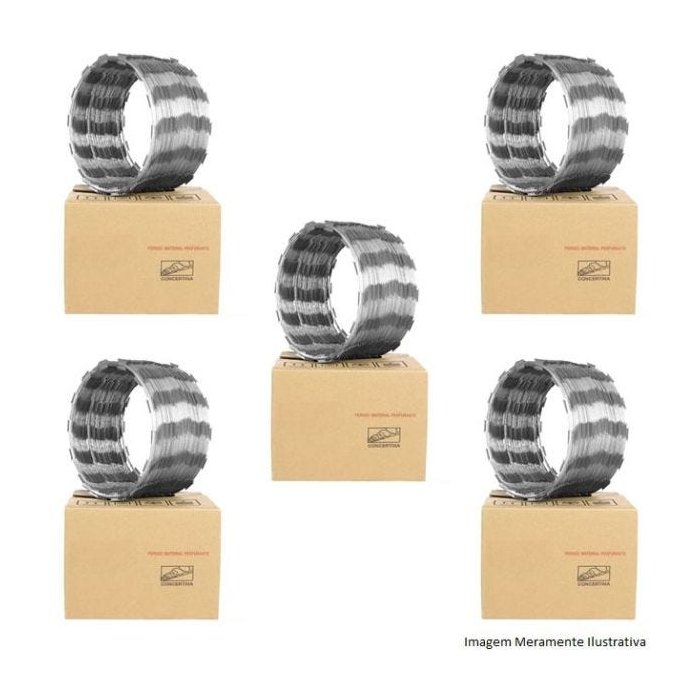 ATENÇÃO: Para não exceder o limite de peso dos Correios, compre até 01 item por etiqueta. Se ultrapassar esse limite, será cobrado frete à parte. Caso deseja comprar mais produtos, favor realizar outra compra assim gerando uma nova etiqueta, ou nos contate por meio do campo de perguntas A Concertina Simples é um produto formado por espiras com lâminas cortantes e tem como função proteger o imóvel de invasões. Para evitar acidentes, o produto deve ser mantido longe do alcance de crianças e animais domésticos. A instalação deve ser feita por um profissional capacitado e o muro deve ter no mínimo 2,10 metros de altura. O produto é fabricado em aço galvanizado com tratamento galvalume, o que deixa a concertina com durabilidade superior. A fabricação é feita com matéria-prima nacional de extrema qualidade e, por isso, possui 5 anos de garantia. Com anos de experiência, a VANSEG é referência e líder de mercado pela qualidade e durabilidade das concertinas. Justamente por ser fabricante, praticamos os melhores preços do mercado e entregamos em todo o país via Correios ou transportadoras. Material: Aço galvanizado com tratamento galvalume Fabricação: VANSEG Diâmetro da espiral: 31,5cm Rendimento do rolo (se instalado com o espaçamento recomendado): 10 metros Espaço entre as voltas (recomendado): 25 centímetros Espiras/voltas por metro (quando instalada com o espaçamento recomendado): 4 Garantia: 5 anos ITENS INCLUSOS: 05 - CERCA CONCERTINA SIMPLES 31,5cm/10m