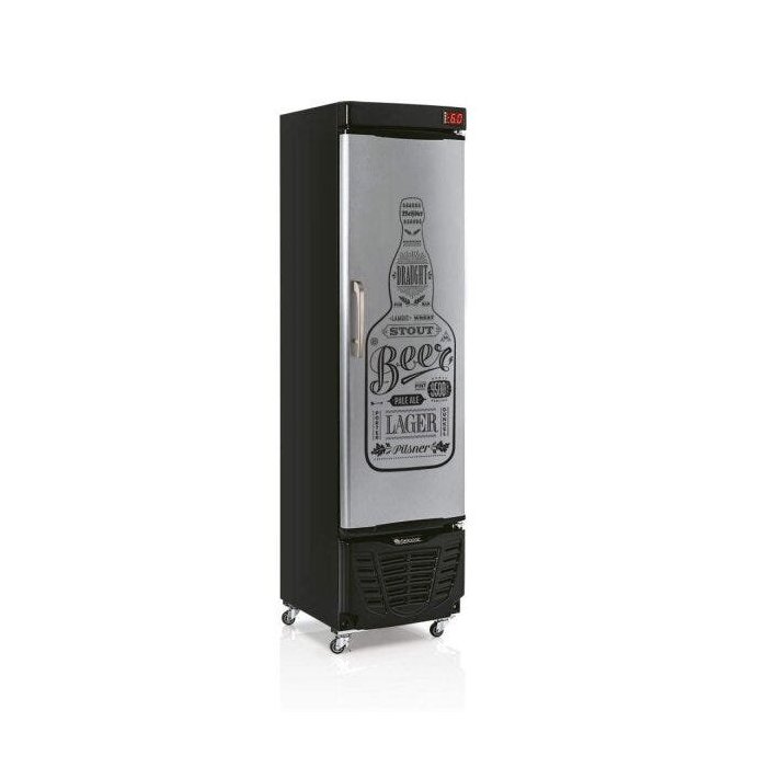 A cervejeira Gelopar foi desenvolvida especialmente para você que aprecia uma cerveja bem gelada, é ideal para refrigeração de cervejas e bebidas (água, sucos e refrigerantes), possui prateleiras reguláveis para comportar vários tipos de embalagens, é frost free não precisa descongelar, possui 4 regulagens de temperatura -6º, -4º, 1ºc ou 3ºc (modo economia), reguladas através de controlador eletrônico digital com indicador digital, suas medidas são altura 1844 x largura 480 x profundidade 591mm, possui porta cega tipo aço inox, laterais pretas.