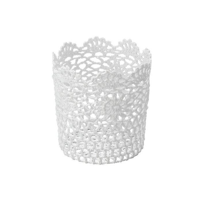 Cesta redonda c/forma de crochê impermeável de plástico branca 17x18cmesta linda Cesta lyor pode ser usada em qualquer ambiente da sua casa. Limpar somente com flanela branca e seca. não utilizar produtos químicos.