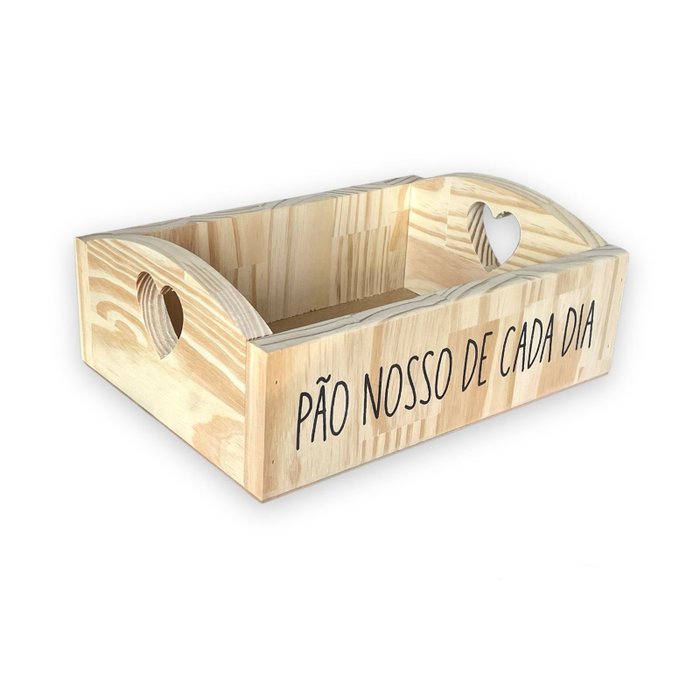 Feita de madeira Pinus, totalmente rústica, com alças em formato de coração. A frase é impressa diretamente na madeira, proporcionando mais durabilidade.