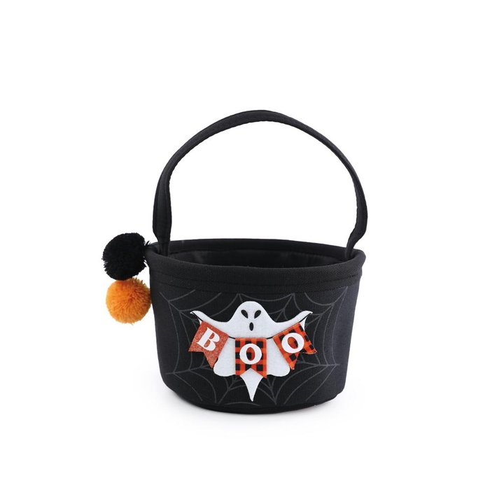 Cestinha Fantasminha Boo com Fantasma Preto e Laranja 13,5cm