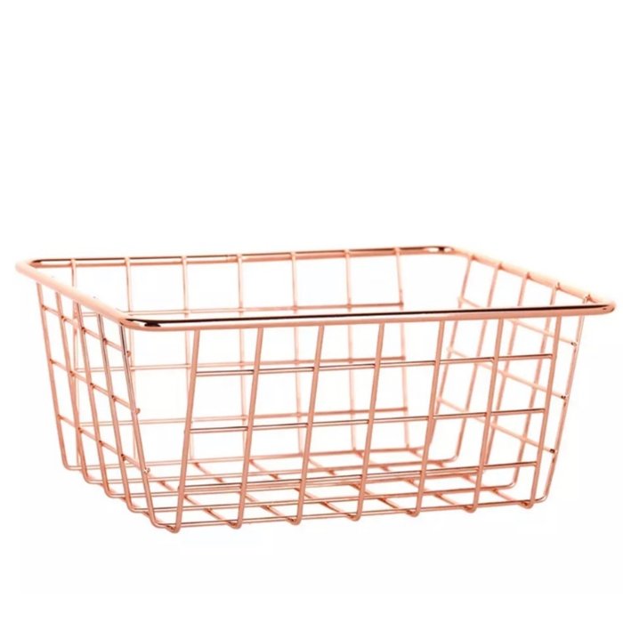 Ideal para você guardar seus mantimentos, frutas, latas, vidros em sua cozinha e o que mais precisar, mantendo a organização e ganhando espaço em seu ambiente. No quarto você pode deixar sua roupas, cintos, bonés, peças íntimas, meias, relógios, óculos, acessórios mais organizados. Material: Metal Cor: Rose Gold Medidas: Altura: 13cm Largura: 22cm Comprimento: 28cm Itens inclusos: 1 cesto aramado Fotos meramente ilustrativas