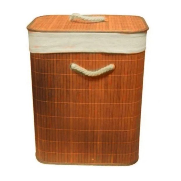 Cesto produzido com bambu e tecido. Possui tampa com alça.