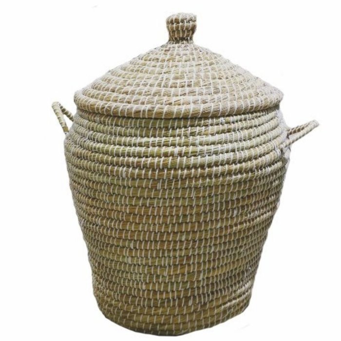 Cesto de Palha Seagrass com Tampa Branco Artesanal David 50x50cm