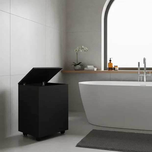 Cesto de Roupas, Roupeiro com rodízios para fácil manuseio.