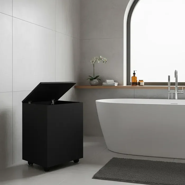 Cesto de Roupas Baú Roupeiro Tulha com Rodízios Banheiro Lavanderia Preto