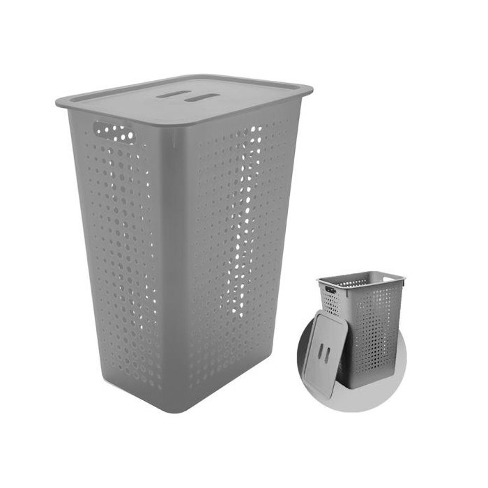 Cesto para roupas com grande espaço interno e capacidade para 47 litros.
