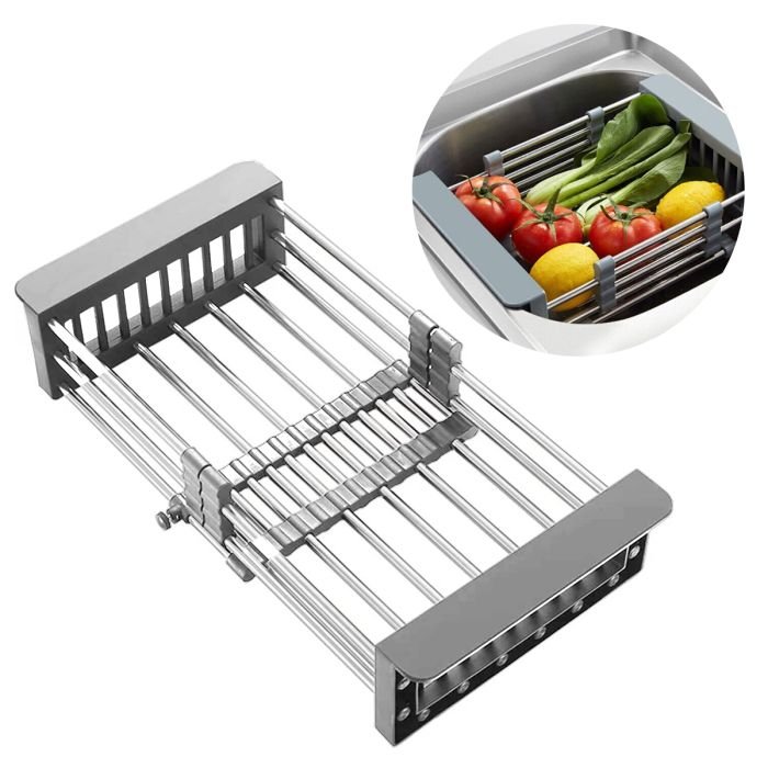 Cesto Escorredor Inox Cuba Ajustável de Pia Extensível Cor Prata - Brinovar