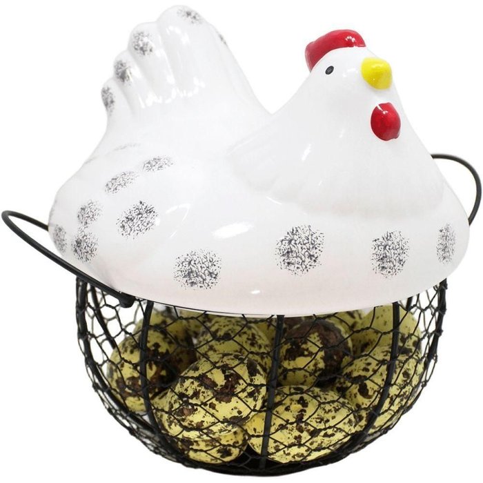 Prático e Charmoso para Sua Cozinha! Adicione um toque de charme rústico à sua cozinha com esta linda galinha porta-ovos em Metal