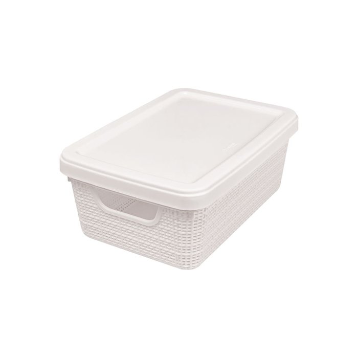 Cesto Organizador com Tampa Juta Plástico Branco Pequeno 1,8 Litros - Jaguar