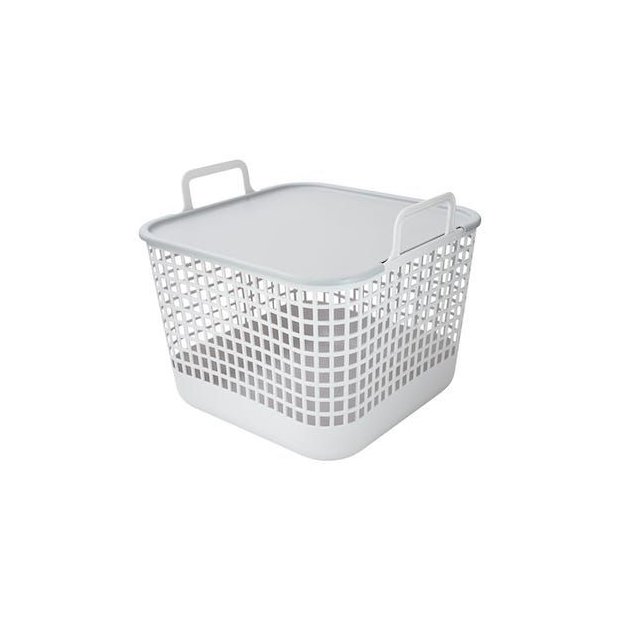 Sua tampa serve de apoio para outro cesto, ajudando a ocupar menos espaço, além de deixar tudo bem organizado. E além de versátil ele também é bem prático, já que suas alças ajudam a puxar de dentro do armário e carregar pela casa.