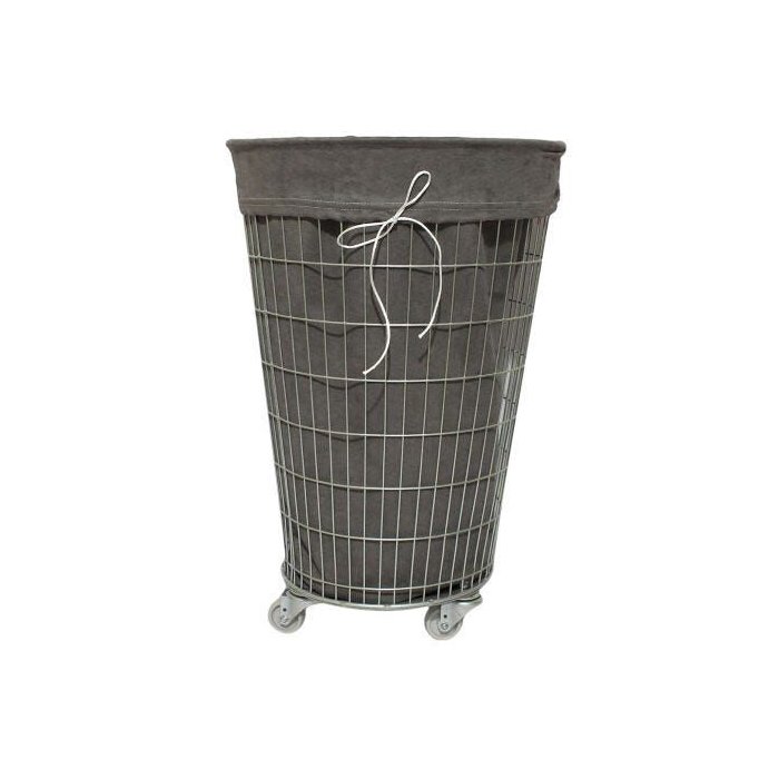Cesto confeccionado em aramado de metal zincado, possuindo saco em tecido removivel.