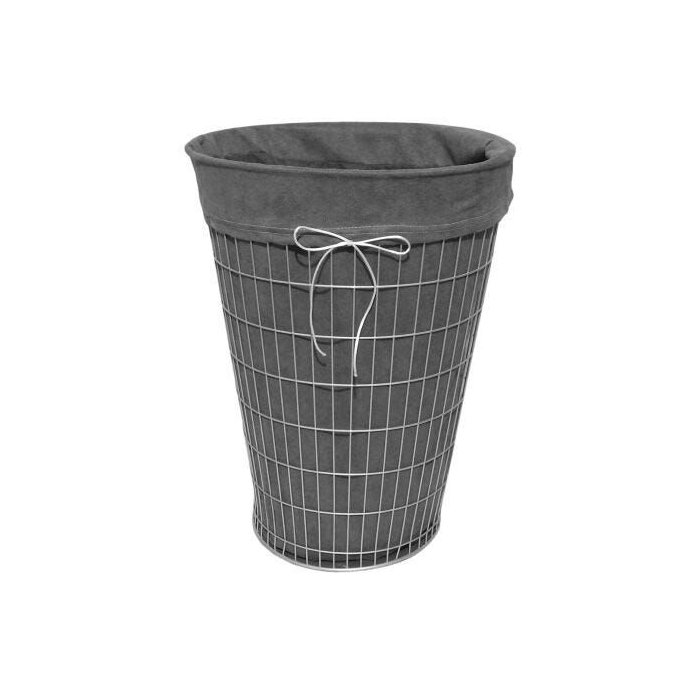 Cesto confeccionado em aramado de metal zincado, possuindo saco em tecido removivel.