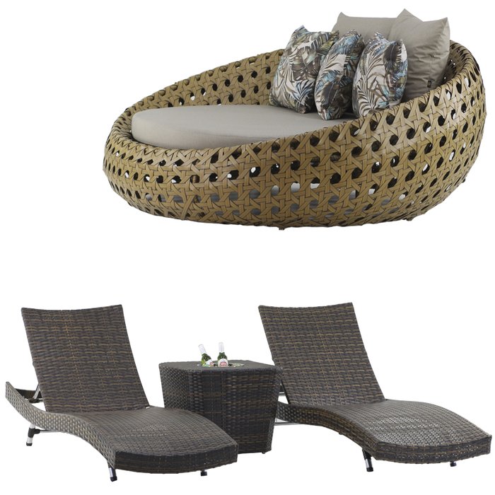 Chaise Barcelona em Alumínio e 2 Espreguiçadeiras Bona e Mesa para Área, Sala, Edícula, Piscina - Pe pedra ferro