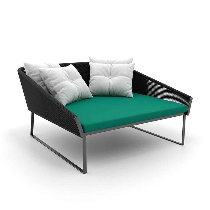 A qualidade de nossos produtos é garantida pela estrutura em alumínio reforçada com solda mig, além da técnica de pintura eletrostática. O revestimento do encosto das cadeiras é em trança de corda náutica com tratamento UV. Espuma de densidade 28 (10cm de espessura) acompanha 4 almofadinhas 50x50cm em tecido karsten acquablock. Para escolher uma das opções de tecidos e cores de corda, entre em contato conosco. Dimensões: Chaise QuadradaAltura do assento até o chão 45 cm na parte da frenteAltura do encosto até o chão 80 cm parte de trásAltura lateral 70cmLargura da parte da frente 144 cmLargura média 148cm AssentoDimensões L128 X 130 cm Data de expedição de 12 dias úteis. Por se tratar de confecção artesanal, as dimensões dos produtos podem sofrer variação. Corda Náutica: Para limpeza das cordas não utilizar produtos abrasivos, como álcool, solventes, nem palha de aço ou materiais semelhantes, não utilizar lavadora de pressão. Utilizar sabão neutro com uma esponja macia e pressão da água baixa, quando o móvel se encontrar em lugar fechado e úmido com pouca circulação de ar por exemplo: piscina aquecida ou sauna, deverá ser feita a limpeza mensalmente para evitar a proliferação de fungos e mofo. Garantia