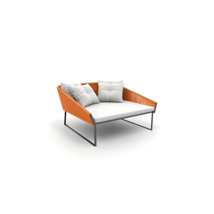 Chaise Quadrada Maldivas Em Corda Náutica Laranja - Tecido Duna Cru Laranja/Branco