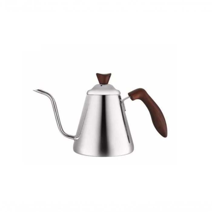 Chaleira Bell profissional Inox Bico De Ganso com alça de madeira 700ml - FlavorsPro A Chaleira Fpro Bell é feita em corpo de aço inox com alça de madeira e 700ml de capacidade. Ótimo item para fazer cafés, chás, entre outras bebidas que necessites de água quente. Seu bico tem desenho que permite ótimo controle do fluxo de água, evitando que seja derramada ou colocada em excesso. Usada tanto por baristas profissionais quanto por entusiastas e amantes do café, a chaleira possui um bico de saída mais fina, chamada de pescoço de ganso, o que permite um melhor controle de fluxo de água quente sobre o café e ainda por conta de seus modelo de colmeia, ajuda a conservar a temperatura da agua. Um modelo sofisticado e moderno A Chaleiras FPRO foi desenvolvida para proporcionar mais precisão na hora do preparo de um café coado. Seu bico no formato de pescoço de ganso oferece melhor controle para o fluxo de água. Seu design clássico, além de extremamente elegante, ajuda a manter a temperatura da água quente por mais tempo. Outro diferencial são o pegador da tampa e alça em madeira, deixando a peça mais charmosa. Design clássico, bico anatômico para melhor controle do fluxo de água e o pegador da tampa e alça de madeira. ? Chaleira de aço inox com alça de madeira ? Design clássico. ? Bico anatômico para melhor controle do fluxo de água. ? Pegador da tampa e alça de madeira. ? Capacidade 700 ml. ? Vai ao fogo. CARACTERÍSTICAS: - Marca: FlavorsPro - Composição: Aço Inoxidável e Madeira - Acabamento: Inox - Capacidade: 700ml - Altura: 15 cm - Diâmetro da boca: 6,5 cm - Comprimento do bicco ao cabo: 26 cm - Peso: 400g