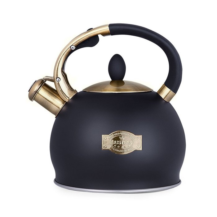 Chaleira Com Apito Em Inox Alça Anatômica Escovada Dourado 2,5L